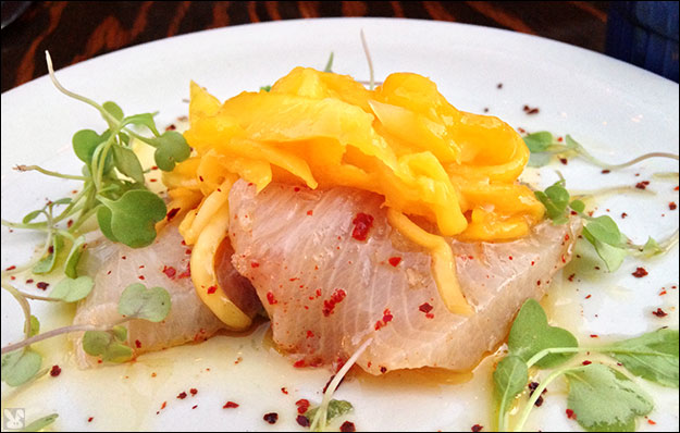 Lime sugar shingles roofed a herby hut of prawn, hamachi and squid ceviche with a smoky pool of nuoc cham swirled with sips of 2012 Anne Amie Muller-Thurgau.