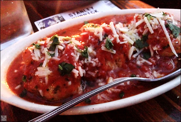 A rich tomato sauce robed these ricotta rounds that rolled down righteously.
