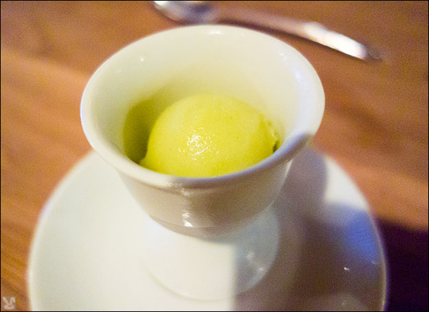... that we enjoyed on our previous visit while Lemon verbena infused creme anglaise pooled with lemon gelee, rhubarb, black sesame granola and strawberries patched with a 2012 Ca’Del Baio Moscato D’Asti.