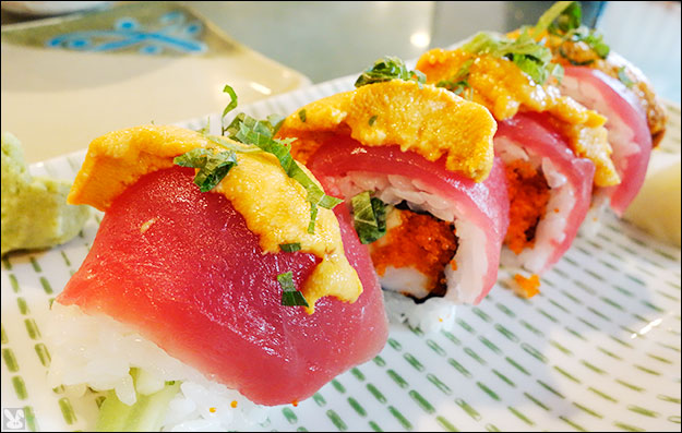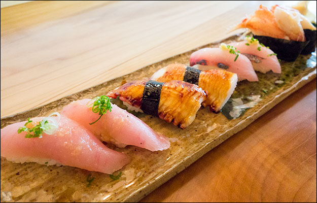 ... were noshable nigiri capped of with a regal “king roll” ($6.75):