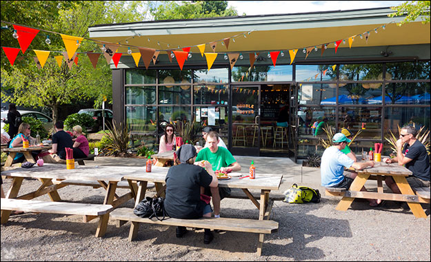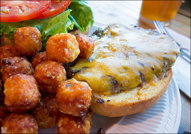 ... with Cheddar that had compacted, underseasoned patty. The sweet potato tots ($1.50 to sub for fries) were sweet spud plugs that weren’t our thing.