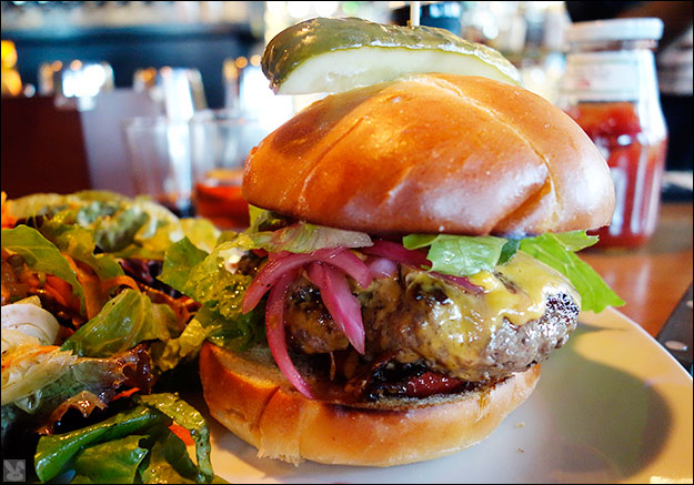 ... which had a denser, finer grind to the meat than we prefer, but it was still good with roasted tomato, pickled onion and a side salad.