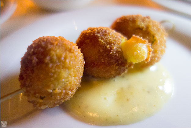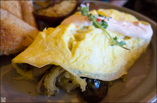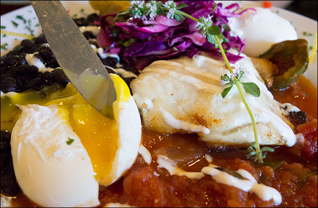 ... was more cooked than we prefer but the runny yolks of the poached eggs helped to hydrate this black bean bordered dish. The polenta wedges were on the bland side and there was an overall under-seasoning as far as our entrees were concerned.