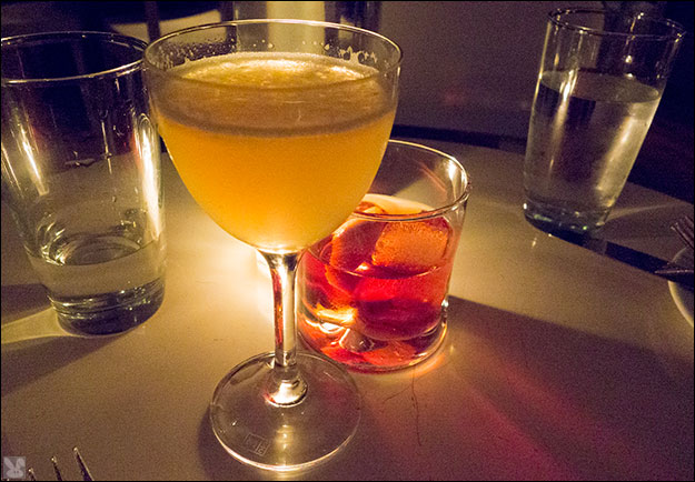 ... along with our Doc Holladay ($10.00) with Fernet, whiskey and Peychaud’s and a Templeton Abbey ($13.00) composed of Canton ginger, lime, cuke and Templeton rye.