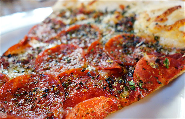 ... had a crackery crust. We went with a portion of pepperoni with dried oregano: