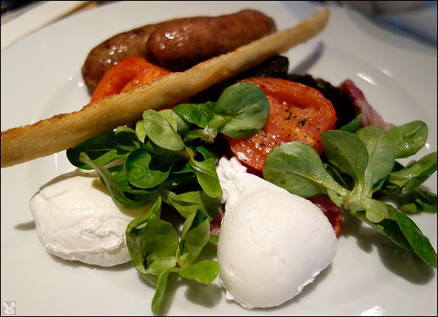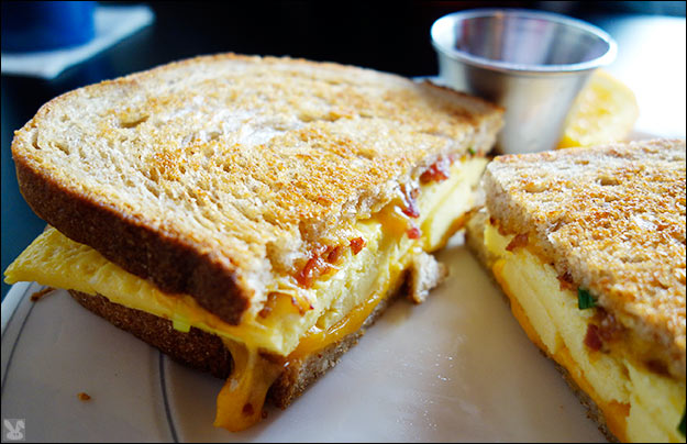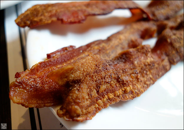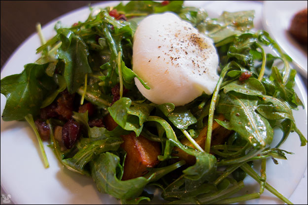 ... was more our thing. This oozy ova over arugula with pork pieces and potatoes was good grub sided by some crispy bacon ($3.00):