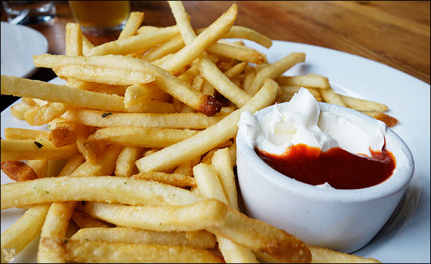 ... housed roast beef, mushrooms and arugula with a horseradish kick was sided by crisp fries.
