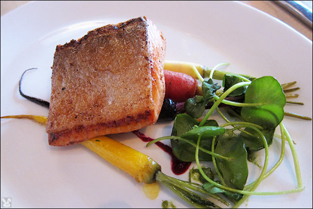 ... at Fishbox. These cradles of cabbage were topped with chili-dusted salmon and served with lime. Flour tortillas bound these bundles of pink planks that were fine fish fold-ups.