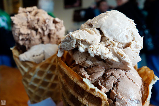 The scent of waffle cones wafted from Salt & Straw as we queued for a 15 minute wait: