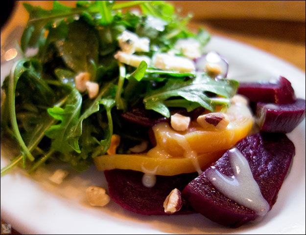 The downstairs dining room was less popular than the upstairs bar where our beet salad ($9.00):