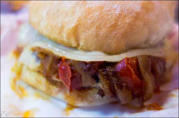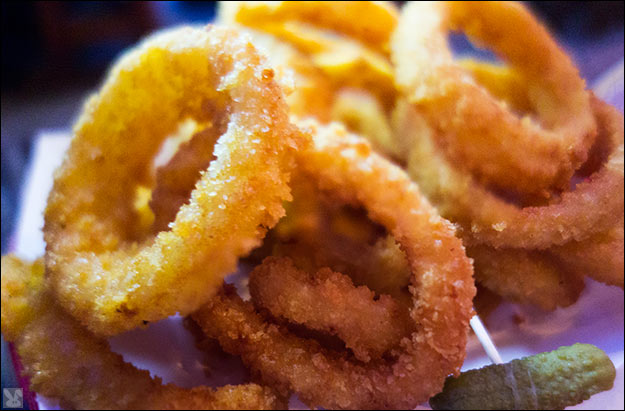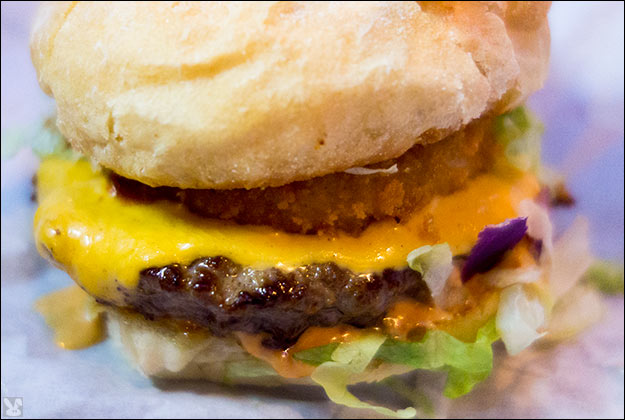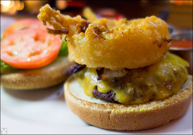 ... gasketed with a onion ring which gave crisp, sweet crunch against a beefed up bun.
