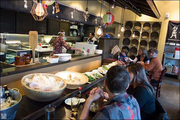 A soft hit of the drum in the entryway of Yataimura Maru announced our entry as we sat down to some beer and sashimi at the bar in this cozy izakaya.