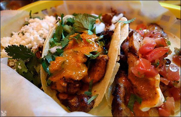 We got the al pastor ($3.25), pollo asado ($3.00), barbacoa ($3.00):