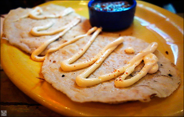 ... had a good garlic hit, but was less lumpy than we prefer. We ended up using most of it to liven up the quesadillas ($4.00 each):