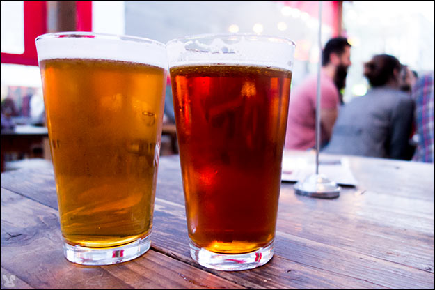 A couple drafts washed down an "angry rhino bbq burger" ($7.50):