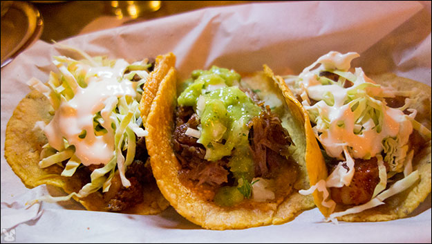 ... followed up by a trio of tacos ($2.50 - $3.25 each) with chorizo, carnitas and shrimp: