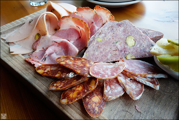 ... had a selection of sensational sliceage including marvy mortadella, saucisson Arles, capicola and their pistachio’ed pork pate.