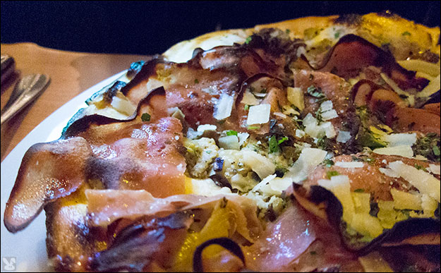 This wood fired circle of perky ‘peño punched and sauce-free, cheese chompage was a fine food frisbee washed down by a couple cans of local suds.