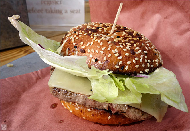 Spicy fries were globbed with garlicky, herby, peppery ‘naise with chili oil to chase our cheeseburger ($8.75):