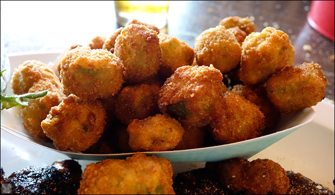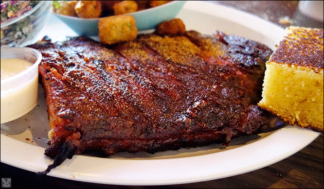 The crisp-crusted, deep fried mac and cheese, house made hot dog-studded brick was a fine foundation for the sensational swine spokes which we splashed with mustardy vinegar sauce and sopped with a puffy Parkerhouse roll.
