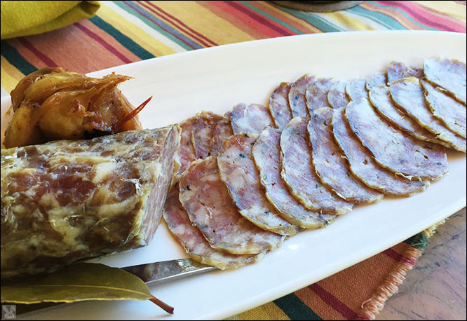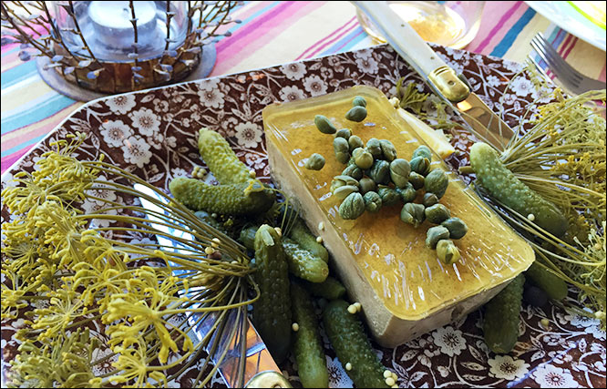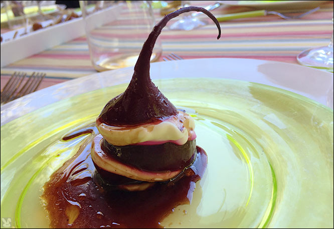 ... bacon and onion skewers, salumi, olives as well as beets shuffled with mascarpone: