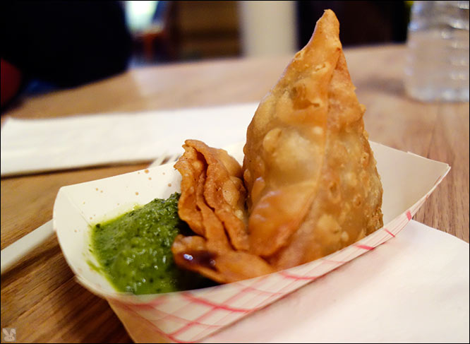 ... wound up with tamarind and cilantro had a bit of heat to the sauce for this crisp crusted, tuber triangle that was a fly ball.