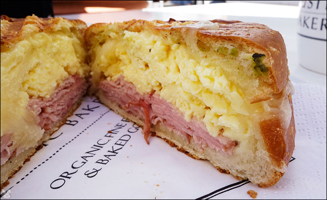 Our crisp crusted breakfast bundle had a hefty ham helement squiring a solid scramble. This collection plate exorcised the faith-based baked good.