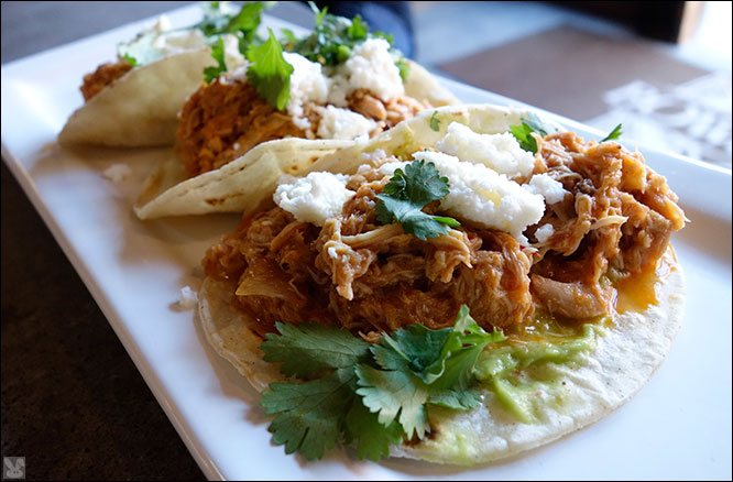 We would have liked some textural variation in the uniformly soft chicken tacos ($7.00):