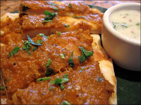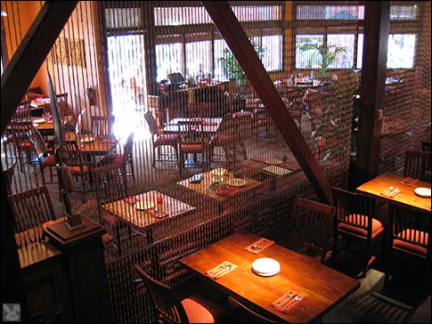 was being prepared. ... sounded more interesting than it tasted. The preparation was served cold which muted the flavor of the grilled lamb. The chilly pencils of asparagus were slightly wilty and the flavor had gotten tired of waiting around, so it left. The woody stalks should have been trimmed a little further and the curry vinaigrette dressed salad contained no evidence of the pea shoots that were listed on the menu. I decided that my naan order had gone unheard when it did not arrive with my salad, but as I was reaching the half way point on my lunch, the waiter told me that the cook had burnt my naan and was making a new one. I decided to stop eating until it arrived so I didn’t have to eat my bread for dessert. The spicy sweet potato naan ($4.95): ... fulfilled it’s spicy description with a hot (but not too hot) kick, sadly, there was no depth of flavor. The cucumber raita had a cooling effect, but this dish was in need of layers of spices rather than simply relying on the caliente factor. The Asian inspired décor and moody lighting attracts cocktail seekers. I’ve been turned away by the daunting