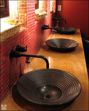 weekend crowds at the popular bar in the past. The unisex washing up area, bifurcates into the men’s and women’s rooms. Very stylish. I might have caught them on their collective