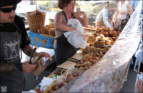 was a non-stop line of addicts. The Downtown Bakery and Creamery: ... has a much faster moving queue since everything they sell is ready-made. I got a nectarine and blueberry galette ($4.00): ... which had a crisp crust that was peasant bloused