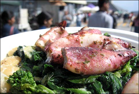 penalty of jumping into the veggie mosh pit later in the day. ... booth, but the Monterey calamari ($8.00): ... sounded way too good to pass up. Chubby got a breakfast sandwich ($8.00): ... which