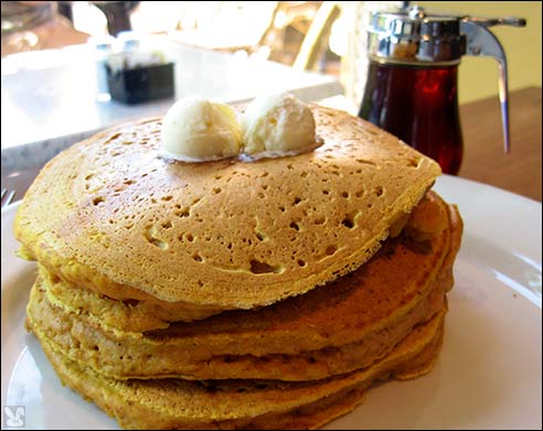 I love quickbreads. Biscuits, muffins and scones activate my brain’s carbo pleasure zone. So imagine my disappointment when the widely praised pumpkin pancakes ($6.95): ... from Crepevine were doughy, flavor