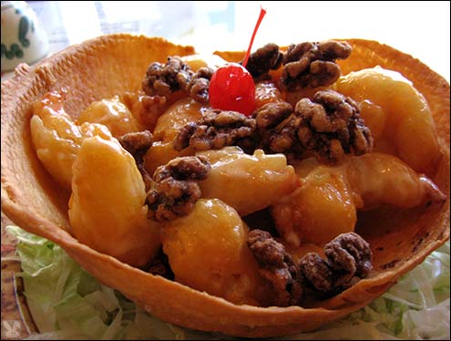 a stir fry, but it was a tostada fused with a sundae. The battered,