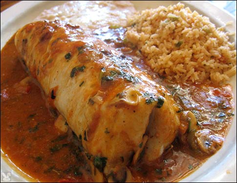 A late start to the day meant lunch after 3:00. Luckily, Las Camelias is open straight through 'til dinner. The Burrito del Mar ($13.95):