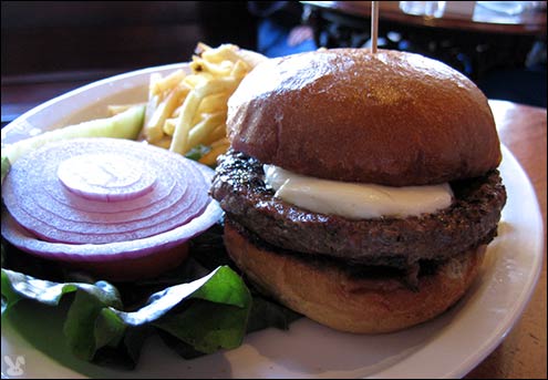 ... and was amazed that they were able to sell a half pound, prime, grade A beef burger with your choice of cheese and a heap of fries for a tenner (I guess that’s where the liquid revenue enhancement of a bar kicks in.) I appreciated a bun whose circumference was equal to the patty (no bread-only bites) but the Kaiser roll had a delicate crumb and became slightly waterlogged. I made the pilot error of choosing the wrong cheese. My curiosity got the best of me and I went with the buffalo mozzarella option which was not to my taste (with it’s reluctance to integrate.) It’s subtle flavor and texture stood alone. The shoestrings tasted (not surprisingly) like the ones that they serve across the street. Crisp delicate borders to a starchy middle. Nicely salted and peppered, they are dispensed generously. This pub is just what Novato needed.