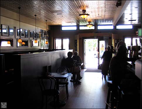 They have bar food with a twist, like chicken wings with mango and cumin, sesame crusted fried oysters and grilled flatbreads (all under $10.00.) In addition to salads and sandwiches they have entrees from the cow, pig and chicken groups as well as (what I plan on getting next time) Guinness battered fish and chips. Entrees range from $10-$23 and the desserts go for $5.00. The list of sweets is limited to cheesecake, cappuccino mousse cake, and organic ice cream from Three Twins Ice Cream in San Rafael. There is a small, sunny, patio in back and