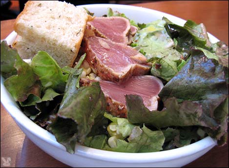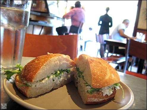 ... keeps the line moving and an aggressive busser will gauge lengthy fork resting periods to mean that it’s time to say buhbye to your salad remnants. This isn’t a place to nibble and natter. There is obvious Bunrab appeal with all this local, organic, rabbit food. All the salads are under $11.00 and sandwiches are under a tenner. I got the Baja ($10.45):