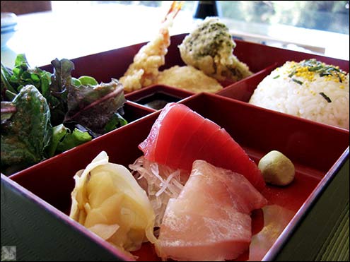 ... and delicious to boot. The fluke, mixed salad, rice and tempura were all tasty. I normally bypass tempura in Japanese restaurants, but the shrimp, zucchini, sweet potato and broccoli were crisp and not at all greasy. I was impressed by the overall high quality of a set lunch that was made with care. Lunch combos are normally the lowest common denominator of Japanese restaurants and this one showed no sign of being phoned in. The staff is friendly and attentive in this