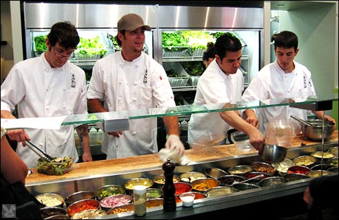 Salad Daze Mixt Greens is turning greens into green. Their FiDi salad counter has a non-stop line out the door throughout lunch. The customers are mostly feminine (not mesclun) in this ecologically conscious, eat-it-and-beat-it, health promoting, refueling station. The well staffed counter: