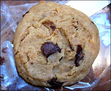 ... which was topped with skinless, white meat chicken. Unfortunately, his favorite bits are the dark meat and skin, but he managed to power through his leafy bowl with only one strong complaint “it needs more bacon.” To be fair, he says that about anything with (or without) bacon in it. The salad base was similar to mine with butter lettuce, cherry tomatoes and avocado but there were also chunks of blue cheese, cucumber and the (previously mentioned) crispy bacon. He also got a dull but boring carbo-cube. I got an “all natural cookie” ($1.25):