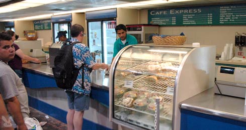 They really need to consider a new name. I mean, do they really want to say that you are being “conned” by comics? There are those who pay big bucks for first addition Dark Knight graphic novels, I personally wouldn’t fork out the dough, but my Spidey sense tells me that if it’s worth it to them, it’s not a “con.” Still, they should change the name. I’m here to support my buddy Cuddles: You’d think that he would lead a luckier life since he is the proud owner of two rabbit’s feet, but ever since he got his new job, he’s incredibly accident prone. I came here to try to keep him out of harm’s way. The problem with all large, non-food centric conventions is that you are pretty much guaranteed to have bad chow. The San Diego Convention Center is no exception.