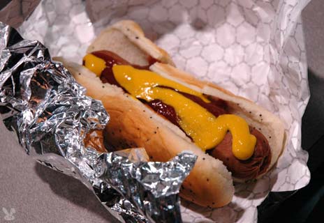 Not only do most big venues require you to utilize their in house “catering” (I love that word because it implies that your desires somehow enter into the picture) you know that there are a few Tyler Durdens behind the scenes as well. I got a Jumbo Hot Dog ($4.00):