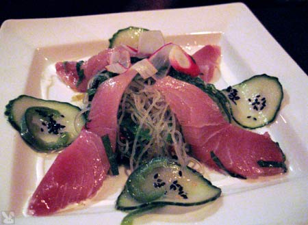 This whole meal proved to be greater than the Dim Sum of the parts. We started with the Hamachi,Cucumber, Shiso, and Yuzu salad ($12.00):