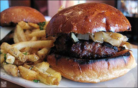 ... was a fun idea. The gorgonzola foam atop a root slaw had an interesting juxtaposition of flavors and textures but it wasn’t my thing. Chubby ended up eating most of them to “help me out.” The Brick Burger ($13.00):