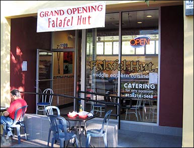 fields… I voted to pass over the incumbent eateries and went to the spot that used to be a combined Dairy Queen and Orange Julius (which always made me think of OJ Simpson and the melty ice cream incident – yikes.) Who couldn’t foresee that a monarchy and emperor based business plan wouldn’t end in tragedy? Does the Emperor outrank the Queen on the board of directors? Do their serf and slaves create an uprising based on inequities of taxation, terms of indenture and free soft serve? The conversion of this royal structure into a hut is definitely step up. The Falafel Hut has only been open for a little over a week, but they have been catching on well enough that they ran out of lamb and beef so I ordered the Chicken Shawerma ($6.75):