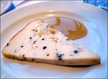 ... this was phenomenally good. Paper thin, raw, tender, cow was bejewled with crunchy nuggets of purple cauliflower, thin coins of sliced radish, and chopped, hard boiled egg. The velvety meat was salted with capers and anchovy and lightened with tumbleweeds of frisee. Gorgonzola Cheese lounged by a pool of honey: