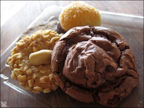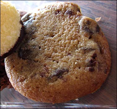 Boulettes Larder in the San Francisco Ferry Building has all sorts of items with which to stock your larder or your pie hole (if you are into immediate gratification.) You can grab a meal or head straight for the sweets. BL subscribes to the extended pinkie school of desserts, but if you look beyond their girlie nature, there are some winners among them. I got some Hello Kitty sized cookies (.75¢ each):