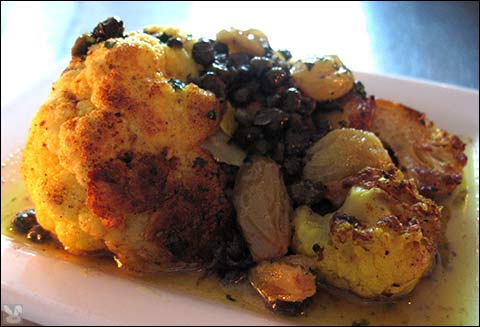 We got to catch up with our pal A at CAV over some wine and snacks tonight. The yellow brainy looking cauliflower ($7.00):