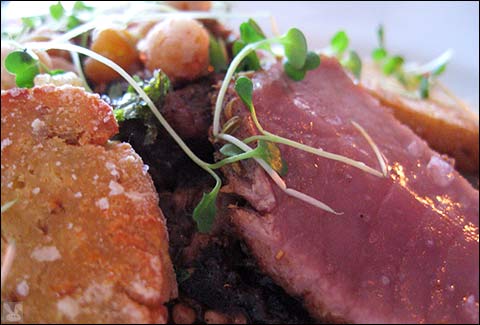 ... aren’t high enough to keep me from scratching my head about this dense, beany, hokey puck. The vegetable slaw couldn’t lighten up this preparation - reminiscent of those that I made in my backyard in my infancy (but to be fair, CAV’s probably still tasted better than mine.) The best dish was the ahi ($11.00 for small):